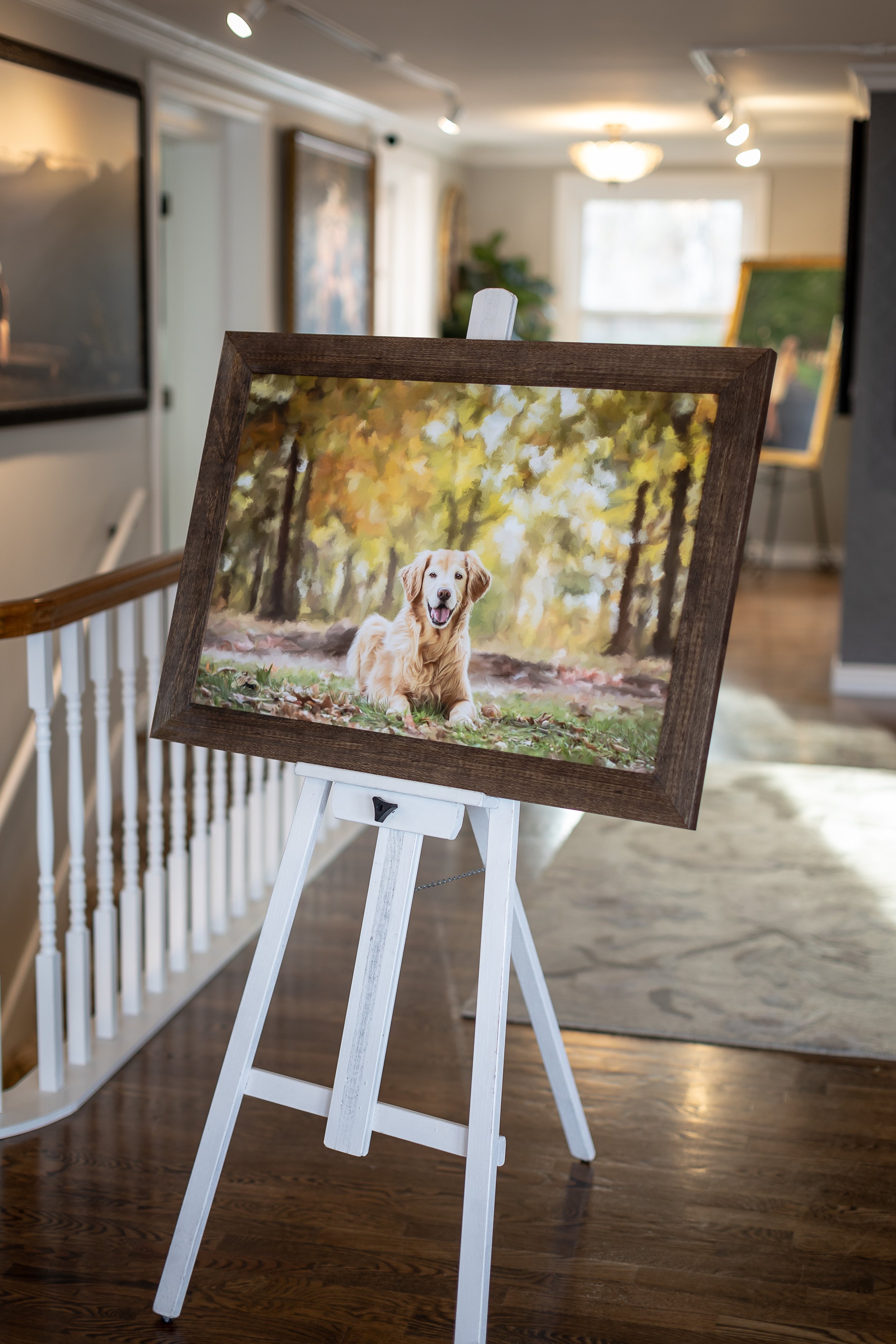 This is a calm, guided experience where you’ll see your portraits for the first time and decide how you’d like to preserve them. Together, we’ll review your images and design artwork that fits your home and the way you want to remember this chapter of your dog’s life.